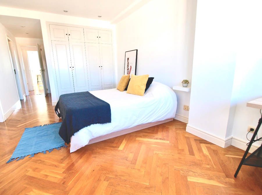 It offers a bright, fully equipped kitchen with dining area, as well as a large living room with sofa and TV—perfect for sharing plans and unwinding. Air conditioning, high-speed WiFi, and all utilities included ensure a hassle-free experience. At Capavi, we take care of everything: WiFi, electricity, water, heating, cleaning of common areas, maintenance, and a welcome kit so you can settle in from day one.